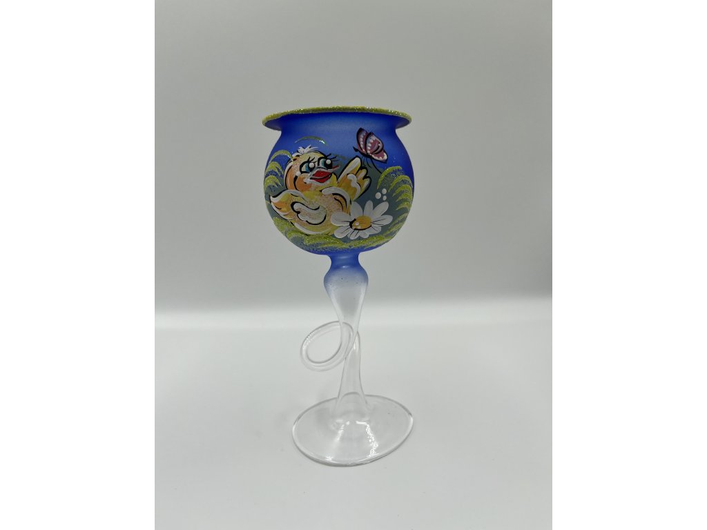 Skleněný svícen ruční výroby s Velikonočním motivem - modrá